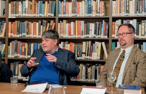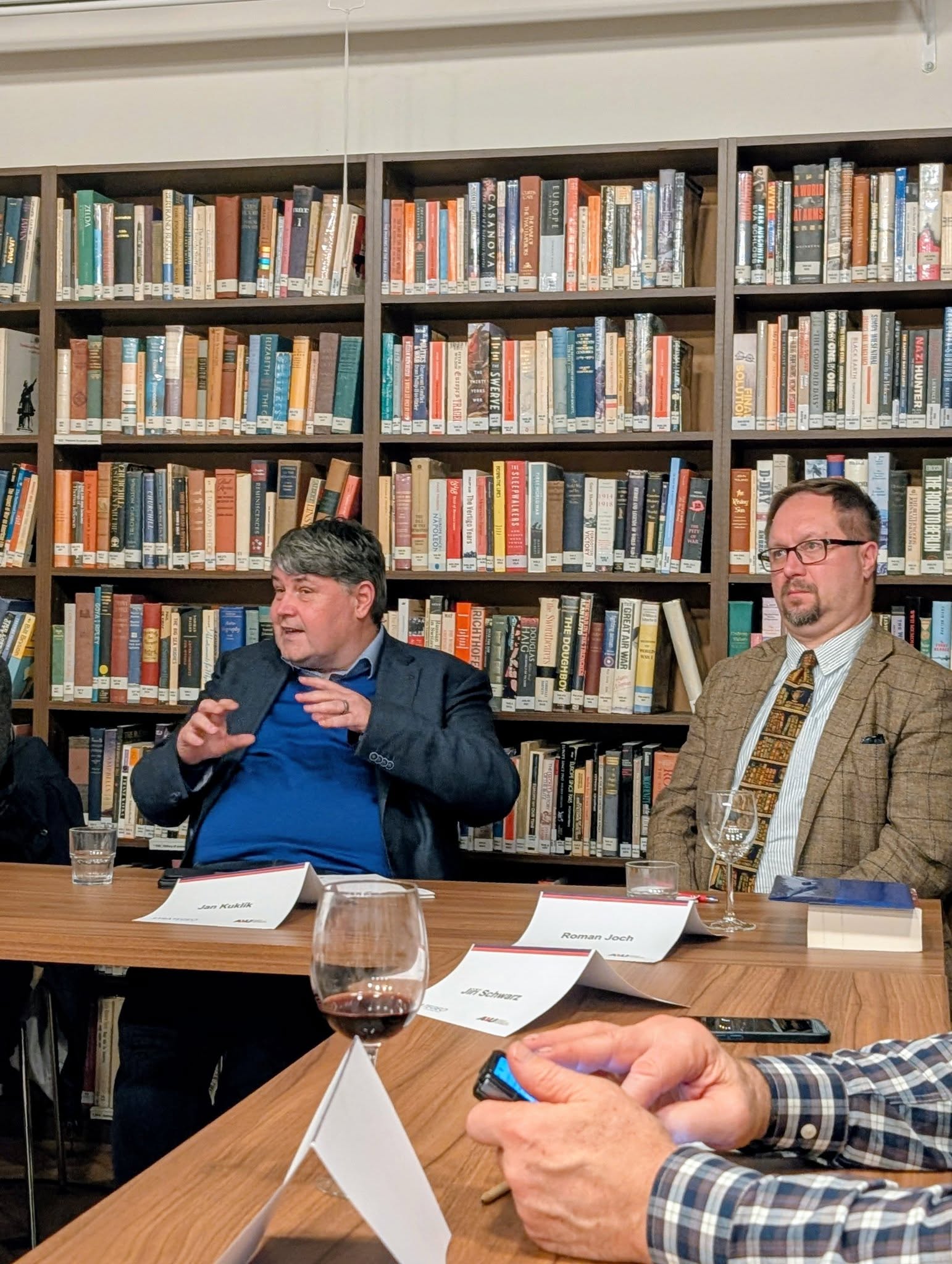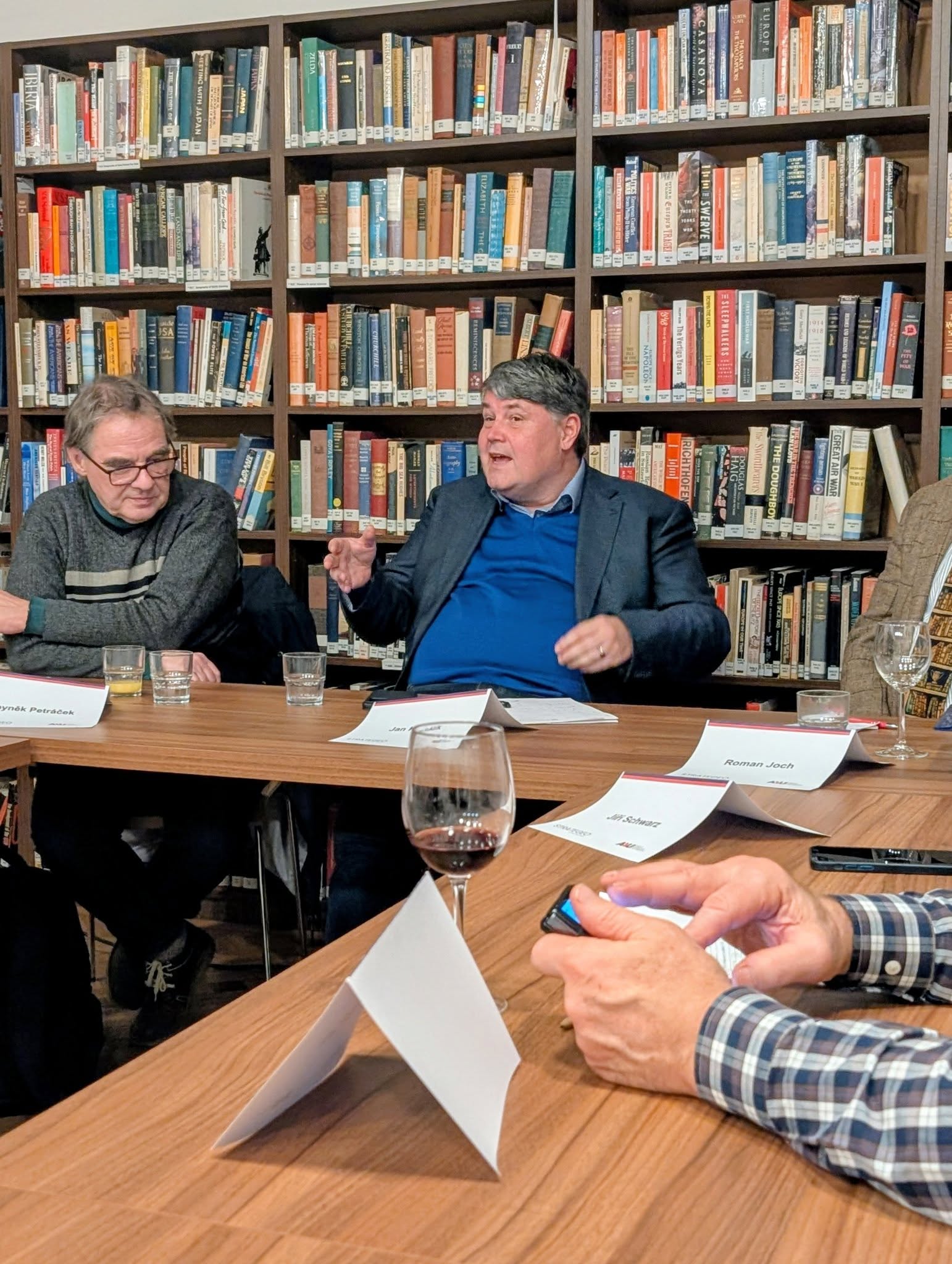 The meeting took place in the library of Anglo-American University on Letenská Street in Prague 1, providing an intimate and inspiring setting for open dialogue.